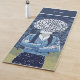 Esta alfombra de yoga dominante en azul sostiene un ilustracion de una persona con la cabeza hecha enteramente de un cerebro. ¡Es un diseño encantador para regalar al genio de la casa o de la escuela! Se puede personalizar el texto por defecto "genius yoga".