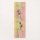 Patrón suave, pastel y abstracto de verde, amarillo, naranja y rojo con un borde ornamentado y dos hadas tipo pixie con traje de cuerpo verde, alas verdes de enlucido creando una alfombra de yoga caprichosa y divertida.