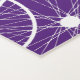 Estera morada de yoga con un patrón de rueda de bicicleta. Ruedas blancas de bicicleta estampadas sobre un morado funky. Perfecto para ciclistas.