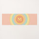 Fashion Eco amigable yoga mate con tigre lindo emergiendo de círculos multicolores sobre fondo rosa de coral. Los círculos multicolores centrales sólo tienen la letra M. Los gatos y la letra M se pueden personalizar.