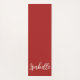 Yoga Mat - Diseño único con Stitched Red y Ivory los colores coincidentes y tu nombre en marfil sobre un sólido fondo rojo oscuro