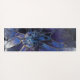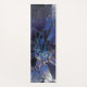 This yoga mat features an abstract bloom: indigo and cobalt petals radiate from a cracked silver-gray rim, gold veins and a black core form a cosmic floral burst.