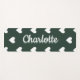 This dark sage green yoga mat features a chic white hearts pattern and a stylish personalized name in retro script. Perfect for fitness enthusiasts who love modern, aesthetic workout gear. Contact the designer for help with matching products, personalization and customization.