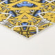Mates de yoga con temática kaleidoscópica. Reflexión. Armonía y equilibrio en amarillo con un toque de azul.