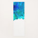 Cubierta azul océano acuática diseño yoga mate con ilustracion de arte original de un hermoso océano azul colorido con tema blanco. Diseño original y vibrante que aporta alegría a la práctica del yoga.