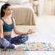 Esterilla De Yoga Espectacular patrón floral amarillo rosado persona