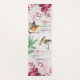 Gimnasio Amor, Esperanza, Fe. ¿Has visto alguna vez una estera de fitness tan hermosa? Lleno de un telón de fondo falso de madera, adornado con hermosas flores y gotitas de acuarela, con inspiradoras palabras: Amor, Esperanza, Fe.