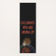 Una alfombra negra de yoga con un texto rojo-naranja que dice: "¡Celebren, lo están haciendo!", en una fotografía de coloridos fuegos artificiales.