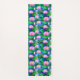 Yoga Mat en un patrón de flores de loto rosado florecientes y colchones de lirios verdes exuberantes flotando en una superficie de agua de textura rica, de tonalidad azul, en tonos joyas de color rosa y verde esmeralda