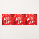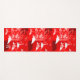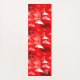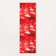 Estera de yoga blanca y roja con gráficos abstractos de grúas de origami blanco y flores de cerezo. Un monograma blanco de una sola letra, en la parte inferior de la alfombra, está listo para personalizar para usted o como una gran idea de regalo.