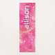 A cute unicorn yoga mat features stars and a rainbows. Personalize with your name to make a fun gift for any one l!