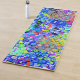 Este graffiti digital tiene todos los colores vivos de los peces de agua salada. Los tonos azules se mezclan con el amarillo, el naranja, el violeta, el verde limón, el rosa, el agua y el negro. Las diferentes texturas y opacidad dan profundidad al diseño. Esta llamativa alfombra de yoga para graffiti seguramente seducirá a los amantes del color.