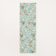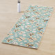La alfombra de bonito de yoga presenta mariposas de estilo retro de arte folclórico y flores blancas pequeñas sobre fondo azul claro.