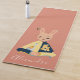 Cuta estera personalizada de yoga para niños con un colorido ilustracion personalizado de un conejo en meditación. Disponible en rosa y azul.
