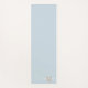 Moderna, elegante y moderna alfombra de yoga presentada en azul polvoriento con monograma de bronceado y tipografía de nombre blanco. Los colores se pueden personalizar a su elección