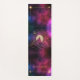 Hermosa alfombra de yoga con efecto purpurina de imitación dorado, imágenes gráficas del sol que se eleva sobre las montañas, todo sobre un fondo borgoño estrellado. El nombre de monograma de tipografía de fuente decorativa es fácil de personalizar. Estar en One con la naturaleza mientras se relaja y medita en esta elegante alfombra.