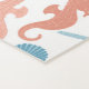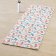 Los colores de esta alfombra de yoga de temática bonito son el coral de mandarina y el azul ceruleano. Las imágenes de caballitos de mar, conchas marinas y pez estrella componen el patrón de repetición. En el centro se encuentra un banner decorado en tonos azules con su monograma y su nombre en tangerino y azul. Todo está colocado sobre un fondo blanco. ¡Qué lindo!