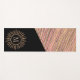 Este diseño presenta un diseño abstracto, moderno, elegante, con dibujos a mano en color amarillo dorado, rosa y blanco sobre fondo negro con un Monograma personalizado. Esta alfombra de yoga es una excelente incorporación a su deporte, actividades de yoga o clases de meditación.