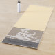 La alfombra de yoga presenta un diseño tranquilo y arenoso en tonos cálidos beige y naturales, que recuerda a la fina arena de la playa o del desierto. Se imprime una sutil ilustración artística: una joven sentada con las piernas cruzadas en una pose clásica de yoga. Inserte su nombre en la parte inferior de la alfombra.