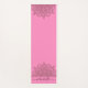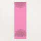 Una bonita y moderna alfombra de yoga rosa pastel con un símbolo del universo de mandala florida y un nombre de tipo de letra de moda, para practicar yoga y hacer ejercicio todos los días. Diseño moderno y elegante.