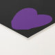 Estera negra de yoga con patrón de corazones púrpura en el frente y fondo púrpura sólido en la parte posterior. ¡Un gran regalo personalizado para el chica en su vida que ama el yoga!