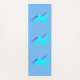 Esta increíble alfombra de yoga muestra una imagen de arte digital de un lindo unicornio azul mágico. El cuerpo principal del unicornio es azul y el hombre y la cola son dos tonalidades diferentes de azul. El unicornio tiene cascos dorados y un brillante cuerno de oro sobre su cabeza. Tiene un ojo en forma de diamante azul. El unicornio tiene una gran sonrisa en la cara.