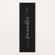 Crea tu propia alfombra de yoga personalizada o monogramada. Personalizar el color blanco del elegante y moderno guión de caligrafía manuscrita de swash. Cambie el color de fondo negro para que coincida con su color favorito. Elimina el color del reverso para obtener un descuento.