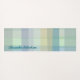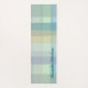 Personalizable personalizable Yoga Mat con nombre, monograma, letras iniciales a su gusto, o usted puede borrar el texto. Caligrafía guión manuscrito para el nombre. Interpretación original con tonos pastel y mullidos, diseño de gingham de color escocés. Estripas retro retro transparentes con matices refinados de azul, verde azulado, aqua, turquesa, amarillo mostaza, verde salvia, menta, morado, lavanda, malva, violeta. Los equipamientos deportivos de moda están a la moda y son admirables en las clases de yoga, gimnasia o fitness. O como una creativa idea de regalo útil para ella. Diseño femenino, moda, elegante y atemporal al mismo tiempo.