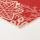 Patrón de copos de nieve. Patrón sin foco con esponjosos copos de nieve blancos sobre un fondo rojo.