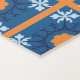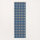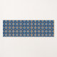 Este elegante alfombra de yoga, de estilo retro, está decorado con azulejos marroquíes en azul y naranja.