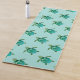 El diseño de la alfombra de yoga mate tiene pequeños patrones de tortugas azul-verde sobre fondo acuático