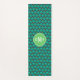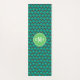 © 2018 Socialite Designs Inc. Ejercicio con estilo personalizado con esta moderna alfombra de diseño de plumas de pavo real monograma. El color de fondo verde azulado se puede personalizar a cualquier color que desee.