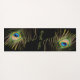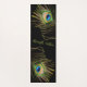 Practice with elegance and inspiration on this glamorous yoga mat featuring vibrant peacock feathers in emerald green, turquoise, and golden accents against a rich black background.