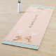 Cuidada y divertida alfombra personalizada de yoga con acuarela ilustracion de perro estirando con huella de pata diciendo "Me gusta estirar mis patas aquí" en Rubor de fondo rosado. Genial para los amantes del perro.