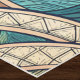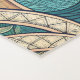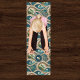This tropical theme yoga mat will remind you of the beach, surf, and sand. Swirls of Polynesian waves reveal tropical blue and geen jewel tones of the South Pacific and palm trees in a retro style, remniscent of beach-inspired ethnic art or tattoos. Your initial appears in a teal green circle, with a double border in a sandy tan color.