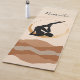 Namaste. El yoga de silueta negra posando sobre una luna de oro sobre un fondo abstracto moderno de montañas neutras. El texto negro en una letra manuscrita moderna dice Namaste o se puede personalizar con tu propio texto.