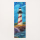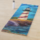 Hermoso faro de rayas rojas y blancas sobre un rocoso en el exterior rodeado de flores y agua azul/cielo Arte de IA creado por minx267
