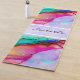 Una alfombra de yoga personalizada con un diseño artístico abstracto. Pintura acuarela con colores rosa, violeta y turquesa mezclando y mezclando creando un bonito patrón de mármol fluido. Una textura de color púrpura pastel en el centro con tu nombre en el interior.