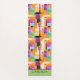 Rectángulos divertidos y círculos de color en los lavados de acuarela de color púrpura, verde, azul pálido y naranja con toques de rojo y negro. Este interesante diseño está personalizado en ambos lados y le dará más interés a sus sesiones de yoga.
