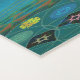una fusión de técnicas tántricas y Lotus mandala complementada con arte geométrico moderno. Con colores verdes y turquesas vibrantes que simbolizan la tierra y el aire, esta alfombra ecológica inspira conciencia del cambio climático y ofrece confort y estabilidad para su práctica.