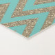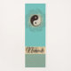 Una estera inspiradora con un elegante símbolo de yin yang de mosaico rodeado de un florecimiento dorado y pequeñas ramas frondosas sobre un fondo verde azulado verde, y en el fondo hay un patrón de chevron purpurinoso dorado con una lazo dorado brillante donde se puede personalizar para hacerla única. Bonitas y elegantes vibraciones.
