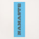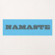 Sencilla y elegante alfombra de yoga azul acuático y gris suave impresa con la palabra NAMASTE.