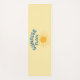 Sunrise flow brings retro yoga vibes to this sunny graphic print mat. The blue and white worn vintage look text makes a simple, uplifting statement. This pale sunshine yellow mat a great way to add sunny energy to your yoga flow, stretching routine, Pilates, or meditation space.