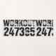 Texto desgastado y raspado Workout 247365 en color negro con fondo blanco. Perfecto para todo aquel que levante, haga ejercicio físico, entrenando, construyendo el cuerpo e ir al gimnasio.