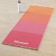 Las rayas de Naranja minimal rosado personalizadas cuentan con una estera de yoga simple y moderna en rosa y naranja con su nombre impreso en letra de escritura blanca.