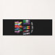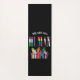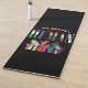 La alfombra de yoga con tema de justicia social presenta texto multicolor "Todos somos humanos" y manos representando a la comunidad LGBTQTIA+