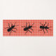 Esta alfombra de yoga tiene tres grandes hormigas negras que se arrastran en un cuadro de picnic rojo y blanco.