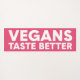 Este gráfico presenta una tipografía negrita y rosa que dice "VEGANS SABE MEJOR" de manera prominente. El diseño emplea un tipo de letra moderno y llamativo que enfatiza el mensaje positivo sobre el veganismo. El esquema de colores brillantes y el texto fuerte crean un atractivo visual, atractivo para aquellos que aprecian o promueven estilos de vida basados en plantas. Este artículo puede servir como eslogan para una campaña vegana, un restaurante o una iniciativa de sensibilización