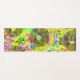 Esta colorida alfombra de yoga tiene los matices del verano: amarillo, verde limón, rosa, naranja, turquesa, violeta, agua, negro, coral, azul y más. Usé capas sobre capas de colores y texturas en diversos grados de opacidad para dar esta profundidad y lo más importante... ¡DIVERTIDO!