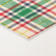 Vertical and horizontal plaid fabric samples featuring a red, green, and beige pattern on a white background. The design is neat and symmetrical.